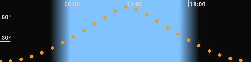 | Höchster Stand (Kulmination) | 12:12 Uhr (h = 79,7°) |