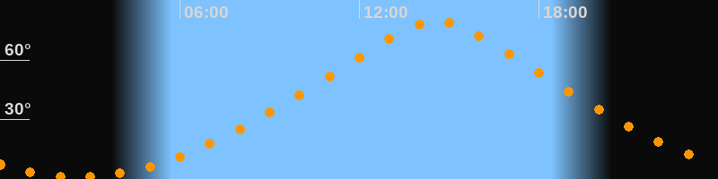 | Höchster Stand (Kulmination) | 14:34 Uhr (h = 79,7°) |