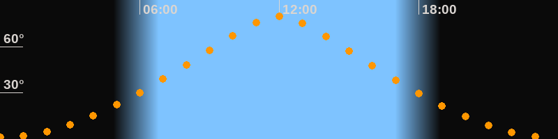 | Höchster Stand (Kulmination) | 11:57 Uhr (h = 79,7°) |