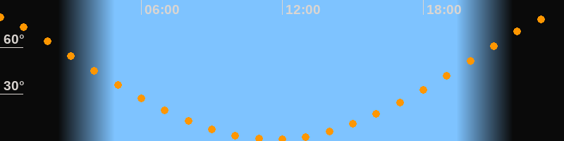 | Höchster Stand (Kulmination) | 23:38 Uhr (h = 79,7°) |