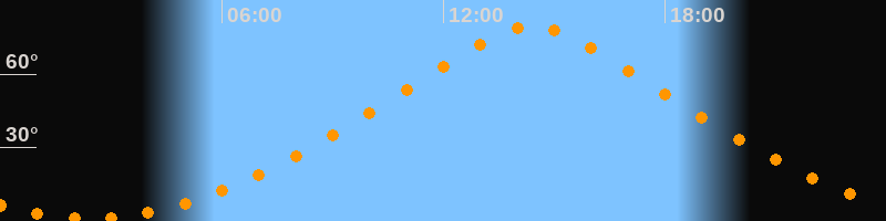 | Höchster Stand (Kulmination) | 14:24 Uhr (h = 79,7°) |