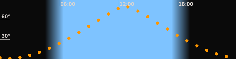 | Höchster Stand (Kulmination) | 12:45 Uhr (h = 79,7°) |