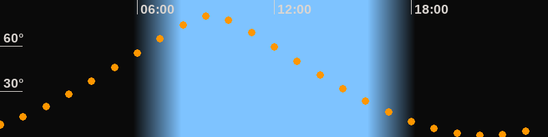 | Höchster Stand (Kulmination) | 09:13 Uhr (h = 79,7°) |