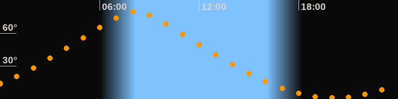 | Höchster Stand (Kulmination) | 08:10 Uhr (h = 79,7°) |