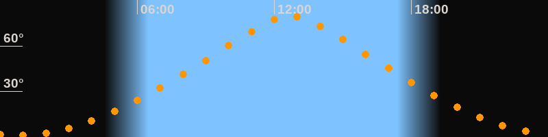 | Höchster Stand (Kulmination) | 12:42 Uhr (h = 79,7°) |