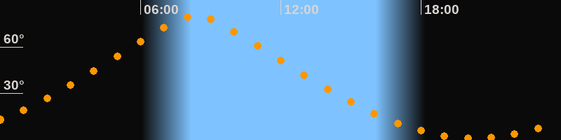 | Höchster Stand (Kulmination) | 08:20 Uhr (h = 79,7°) |