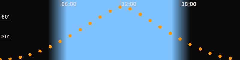 | Höchster Stand (Kulmination) | 12:13 Uhr (h = 79,7°) |