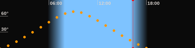 | Höchster Stand (Kulmination) | 09:09 Uhr (h = 68,4°) |