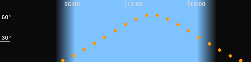 | Höchster Stand (Kulmination) | 14:28 Uhr (h = 68,4°) |