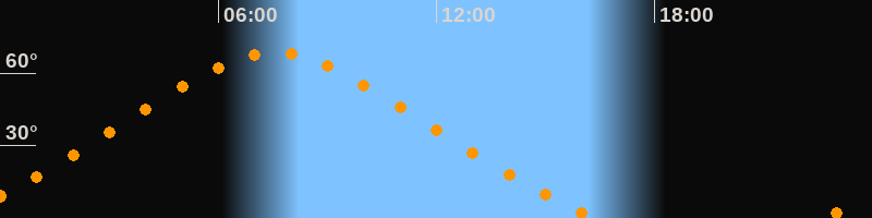 | Höchster Stand (Kulmination) | 07:32 Uhr (h = 68,4°) |