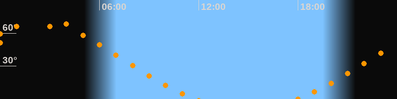 | Aufgang | 17:55 Uhr im Nordosten (αAz = 38,6°) |