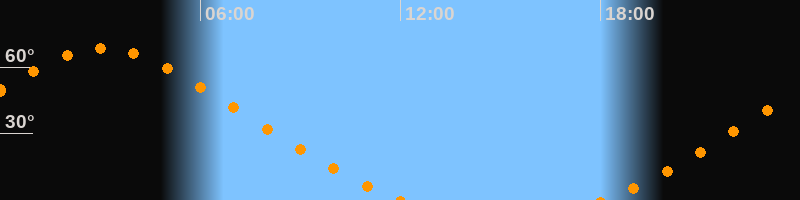 | Aufgang | 18:05 Uhr im Nordosten (αAz = 38,6°) |