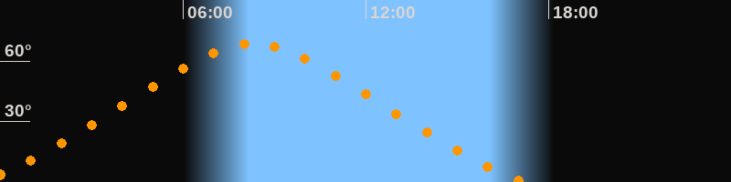 | Höchster Stand (Kulmination) | 08:17 Uhr (h = 68,4°) |