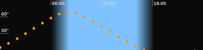 | Höchster Stand (Kulmination) | 08:09 Uhr (h = 68,4°) |