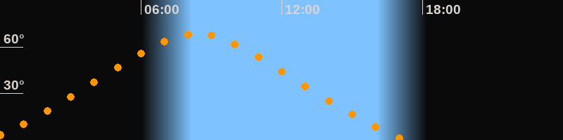 | Höchster Stand (Kulmination) | 08:22 Uhr (h = 68,4°) |