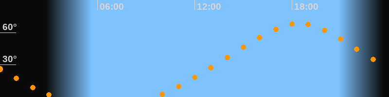 | Höchster Stand (Kulmination) | 18:24 Uhr (h = 68,4°) |