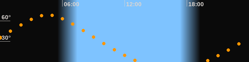 | Untergang | 13:30 Uhr im Nordwesten (αAz = 321,4°) |