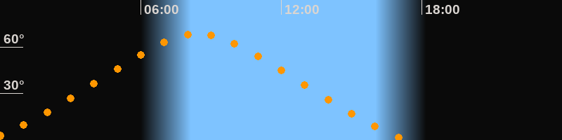 | Höchster Stand (Kulmination) | 08:27 Uhr (h = 68,4°) |