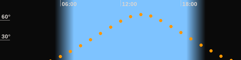 | Höchster Stand (Kulmination) | 14:03 Uhr (h = 68,4°) |