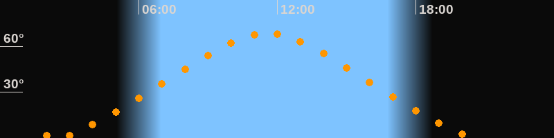 | Höchster Stand (Kulmination) | 11:33 Uhr (h = 68,4°) |