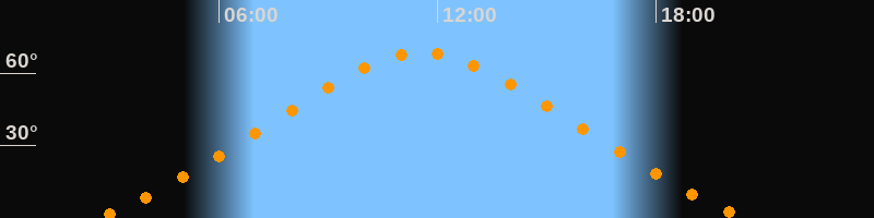 | Höchster Stand (Kulmination) | 11:34 Uhr (h = 68,4°) |