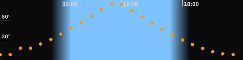 | Höchster Stand (Kulmination) | 11:26 Uhr (h = 86,5°) |