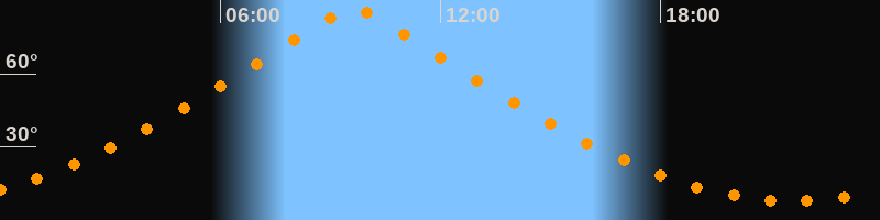 | Höchster Stand (Kulmination) | 09:37 Uhr (h = 86,5°) |