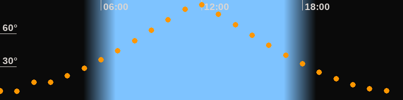 | Höchster Stand (Kulmination) | 11:45 Uhr (h = 86,5°) |