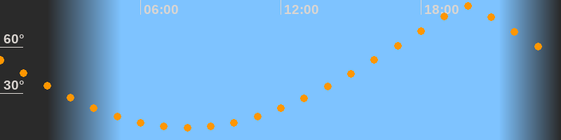 | Höchster Stand (Kulmination) | 19:59 Uhr (h = 86,5°) |