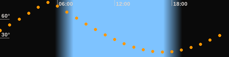 | Höchster Stand (Kulmination) | 05:05 Uhr (h = 86,5°) |