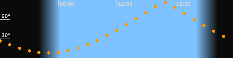 | Höchster Stand (Kulmination) | 16:55 Uhr (h = 86,5°) |