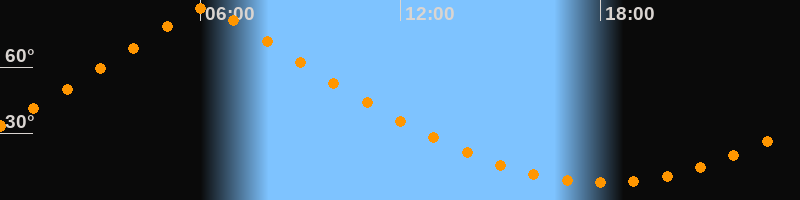 | Höchster Stand (Kulmination) | 06:09 Uhr (h = 86,5°) |