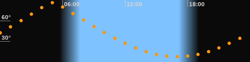 | Höchster Stand (Kulmination) | 05:02 Uhr (h = 86,5°) |