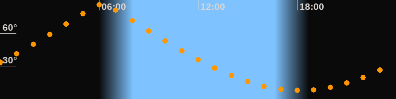| Höchster Stand (Kulmination) | 06:10 Uhr (h = 86,5°) |