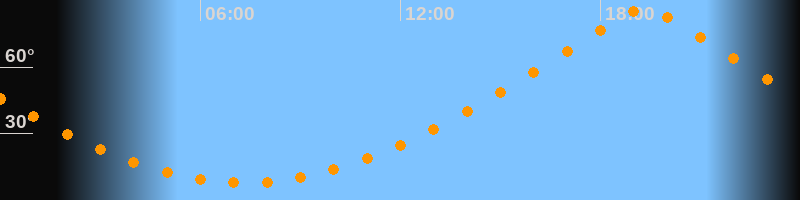 | Höchster Stand (Kulmination) | 19:19 Uhr (h = 86,5°) |