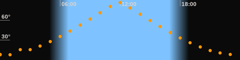 | Höchster Stand (Kulmination) | 11:52 Uhr (h = 86,5°) |
