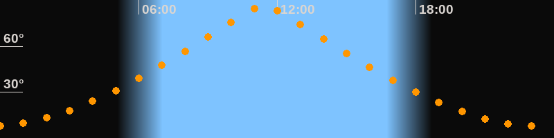 | Höchster Stand (Kulmination) | 11:25 Uhr (h = 86,5°) |