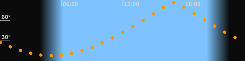 | Höchster Stand (Kulmination) | 17:01 Uhr (h = 86,5°) |