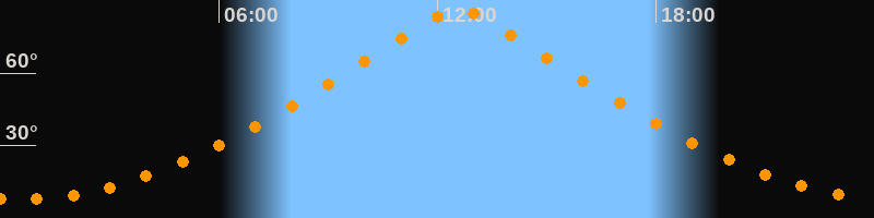 | Höchster Stand (Kulmination) | 12:34 Uhr (h = 86,5°) |