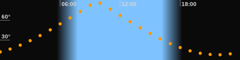 | Höchster Stand (Kulmination) | 09:41 Uhr (h = 86,5°) |