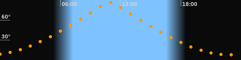 | Höchster Stand (Kulmination) | 10:53 Uhr (h = 86,5°) |