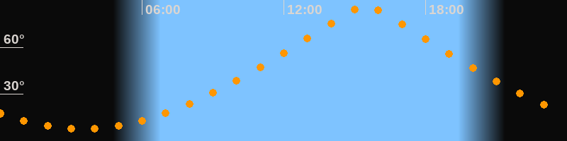 | Höchster Stand (Kulmination) | 15:28 Uhr (h = 86,5°) |