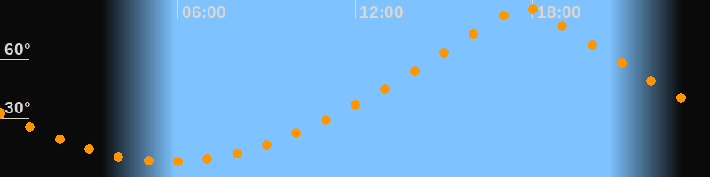 | Höchster Stand (Kulmination) | 17:42 Uhr (h = 86,5°) |