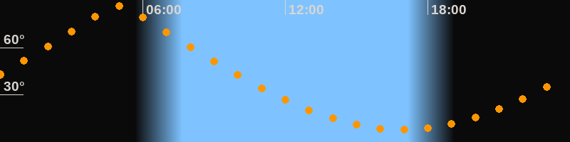 | Höchster Stand (Kulmination) | 04:59 Uhr (h = 86,5°) |