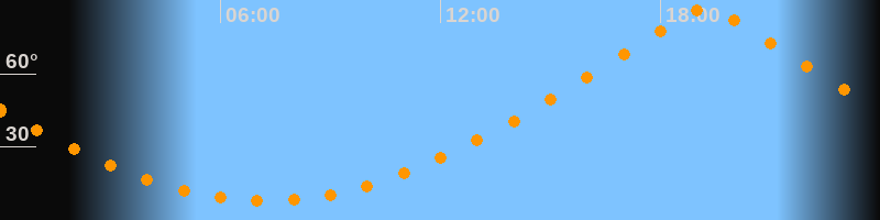 | Höchster Stand (Kulmination) | 19:14 Uhr (h = 86,5°) |