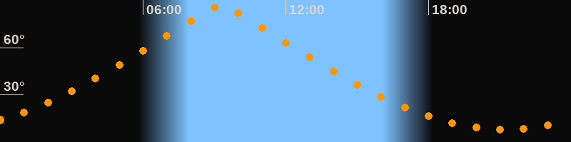 Höchster Stand (Kulmination)09:15 Uhr (h = 86,5°)