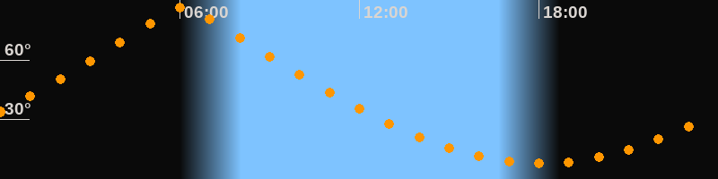 | Höchster Stand (Kulmination) | 06:06 Uhr (h = 86,5°) |