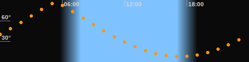 | Höchster Stand (Kulmination) | 05:19 Uhr (h = 86,5°) |