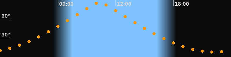 | Höchster Stand (Kulmination) | 10:19 Uhr (h = 86,5°) |