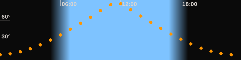 | Höchster Stand (Kulmination) | 11:35 Uhr (h = 86,5°) |